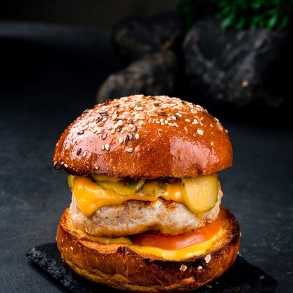 БУРГЕР С КУРИЦЕЙ И КАРТОФЕЛЕМ ФРИ