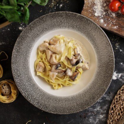 ТАЛЬЯТЕЛЛЕ С КУРИНОЙ ГРУДКОЙ В СЛИВОЧНО-СЫРНОМ СОУСЕ