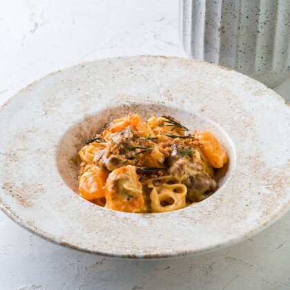 ТАЛЬЯТЕЛЛЕ С ТЫКВОЙ И ГОВЯЖЬИМИ ЩЕЧКАМИ